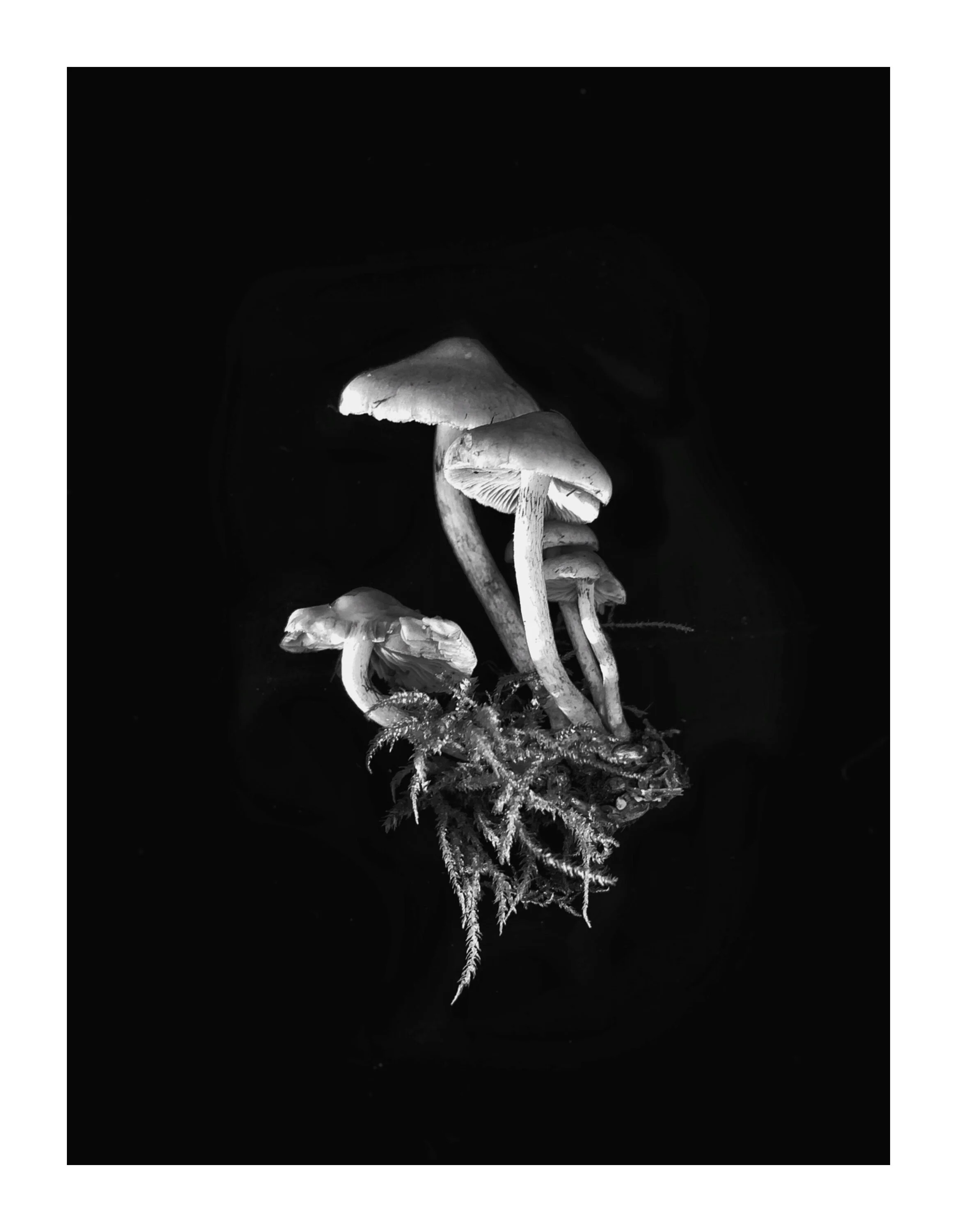 This winter the mushrooms locally caught my attention, and as I read about Entangled Lives by Sheldrake, Gathering Moss by Kimmerer and the History of Trees by Haskell, I was photographing a series of mushroom finds from walk with the dogs. Backed on velvet and lit by either natural light or an old clip-on spot from Ikea, I spent a lot of time playing with lighting and editing tools, immersed in the physical and literal lives of our brycologic and mycologic communities.