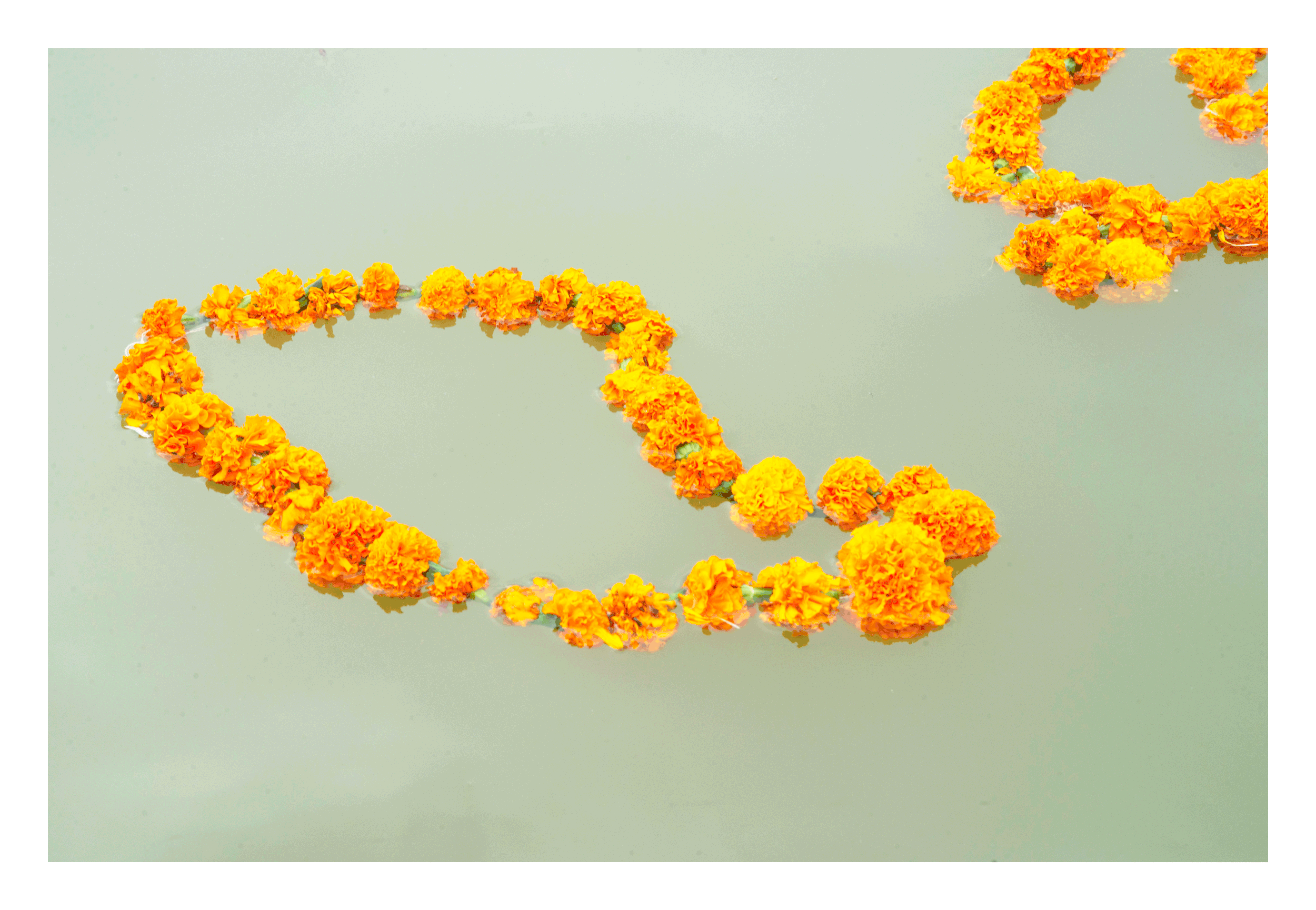 These are marigold garlands, presented to the Hindu gods, following the spiritual flow of the River Ganges. I find myself observing the role of water in so many religious traditions. The Ganges River is a part of Hinduism’s creation myths, a critical natural resource valued in life and death, where life and religion are deeply intertwined. Rivers remain fundamental to life. A perfect channel to explore photographically.